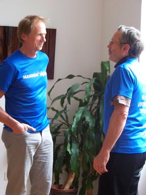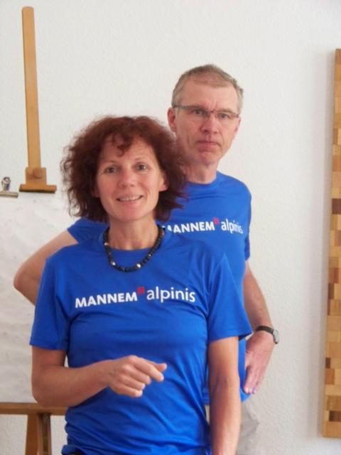 Seit dieser Woche ist es soweit: Die Mannem Alpinis können sich ihre Team-T-Shirts überstülpen und loslaufen. „Mit unserem Namen MANNEM²alpinis auf der Vorderseite des T-Shirts zeigen wir, wo wir herkommen: Zum großen Teil sind wir aktiv im Alpenverein. Zudem ist für fast alle von uns Mannheim und die Metropolregion Rhein-Neckar Lebens- und Arbeitsmittelpunkt. Durch die zwei im Quadrat wollen wir deutlich machen, dass wir die Teams nicht getrennt sehen, sondern als eine Einheit. Deshalb haben wir im Oxfam Slogan „4 Personen, 1 Team, 100 km, 30 Stunden“ eine kleine, aber eben wesentliche Änderung vorgenommen: 2