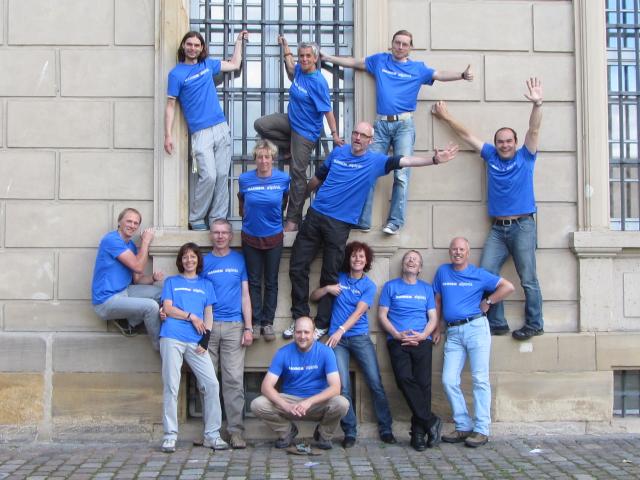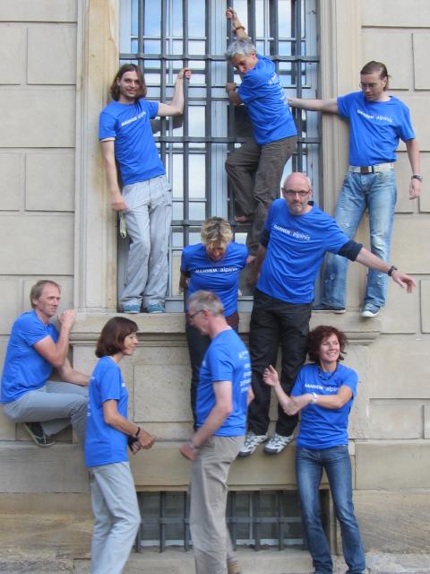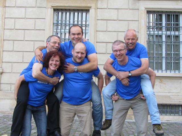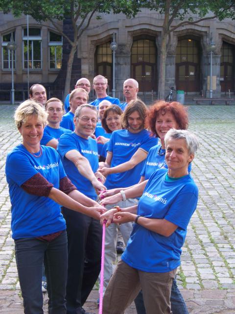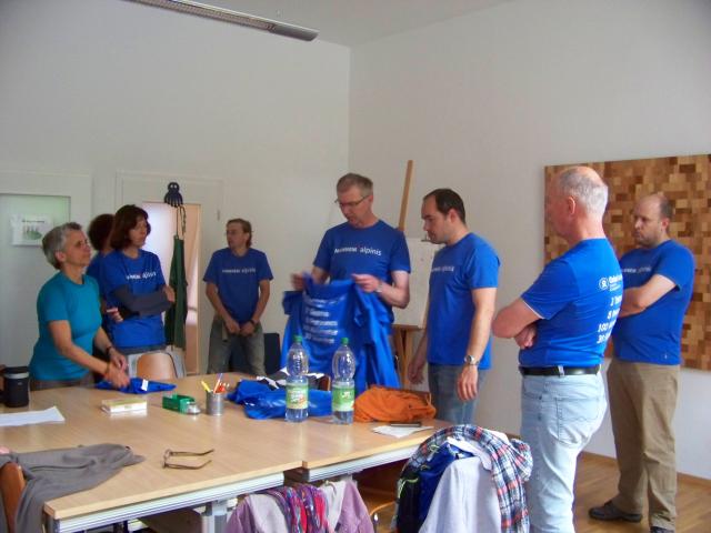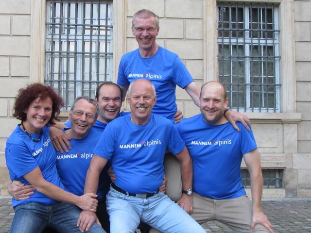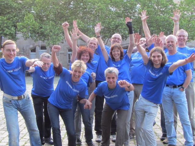 - Die Mannem Alpinis mit ihrem T-Shirt für den Oxfam Trailwalker 2012.