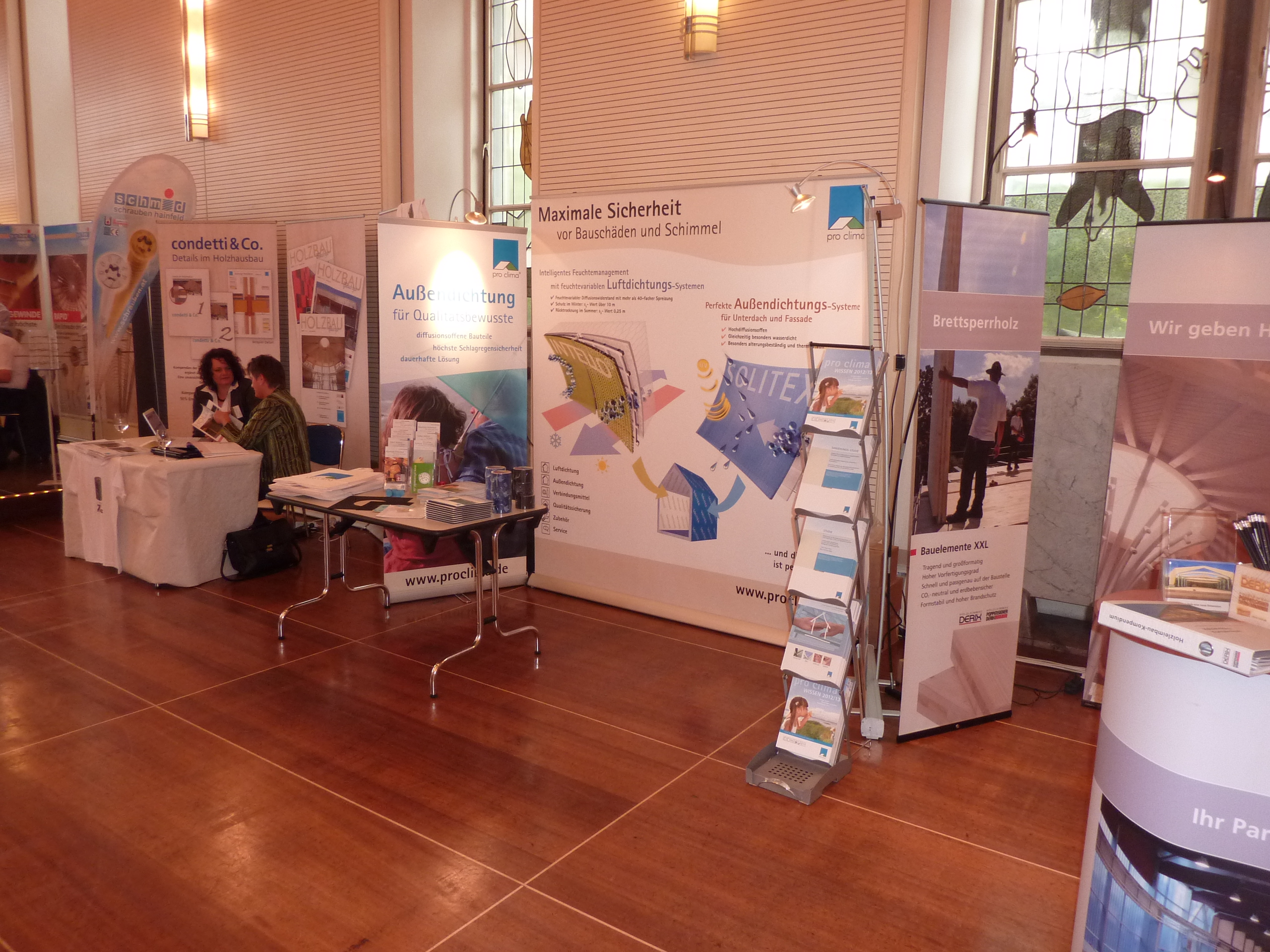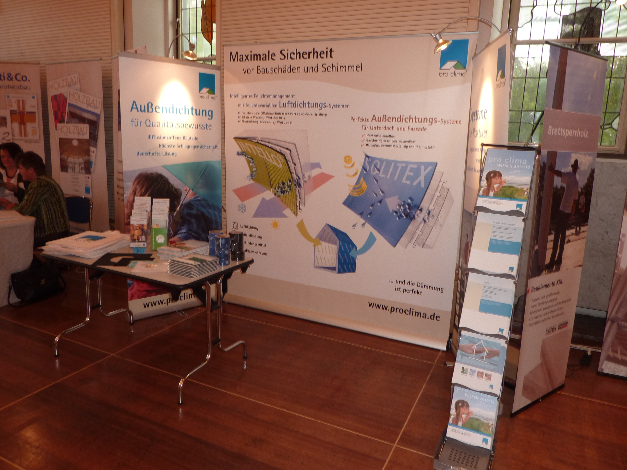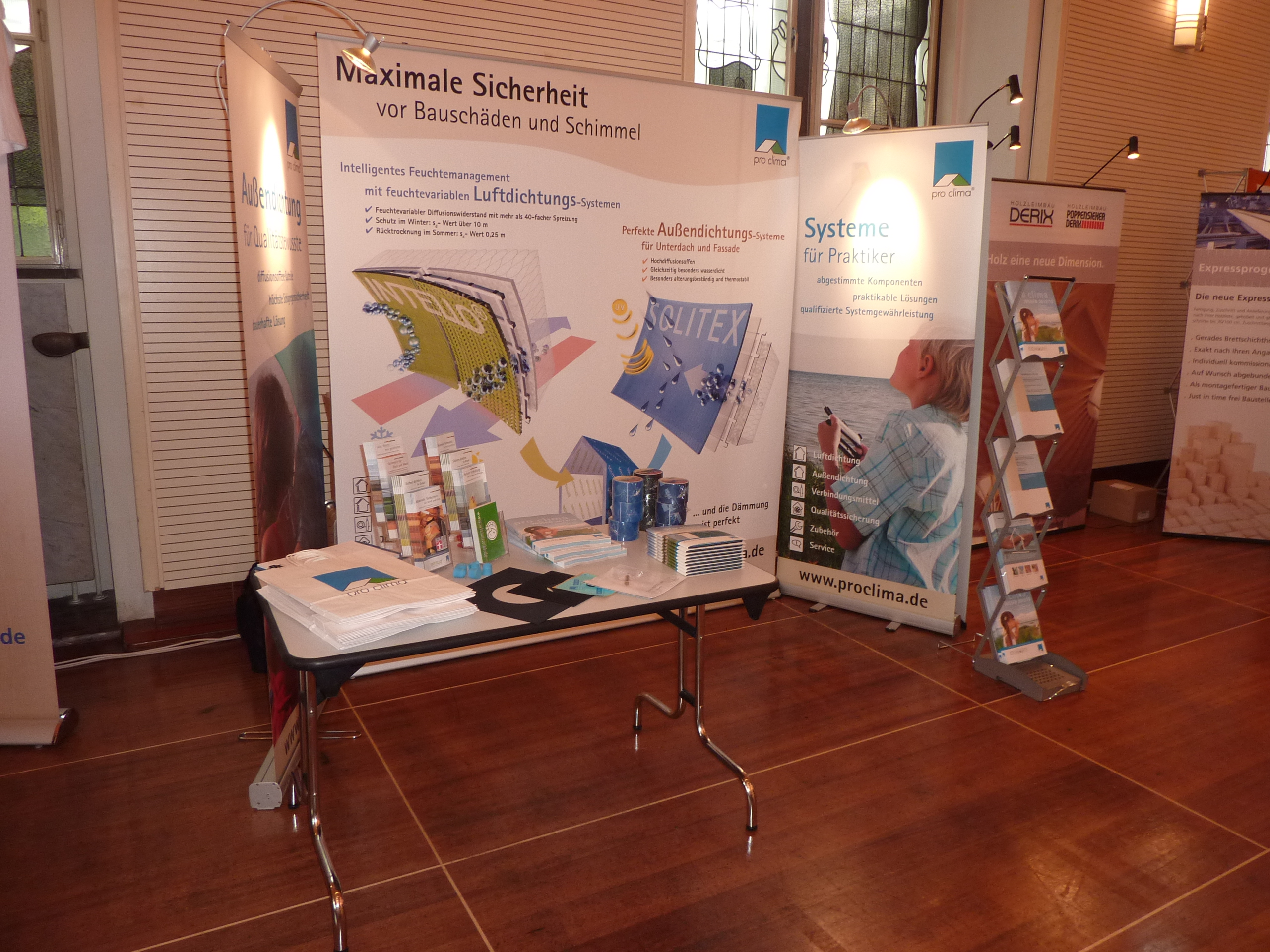 Den pro clima Stand betreuten die Anwendungstechniker Martin Großekathöfer und Christoph Böhringer: „Es waren vor allem Planer und Architekten da. Uns freut, dass die Bedeutung von Luftdichtung innen und Winddichtung außen für die meisten Fachleute bereits selbstverständlich ist und sie wegen der Risikominimierung von Bauschäden gezielt feuchtevaribale Bahnen planen und einsetzen“, fasst Böhringer die Kontakte am pro clima Stand zusammen. Großekathöfer ergänzt: „Wer Energie sparen will, muss korrekt dichten und dämmen – und die Lösungen dazu sind abgestimmte Systeme mit Detaillösungen.“