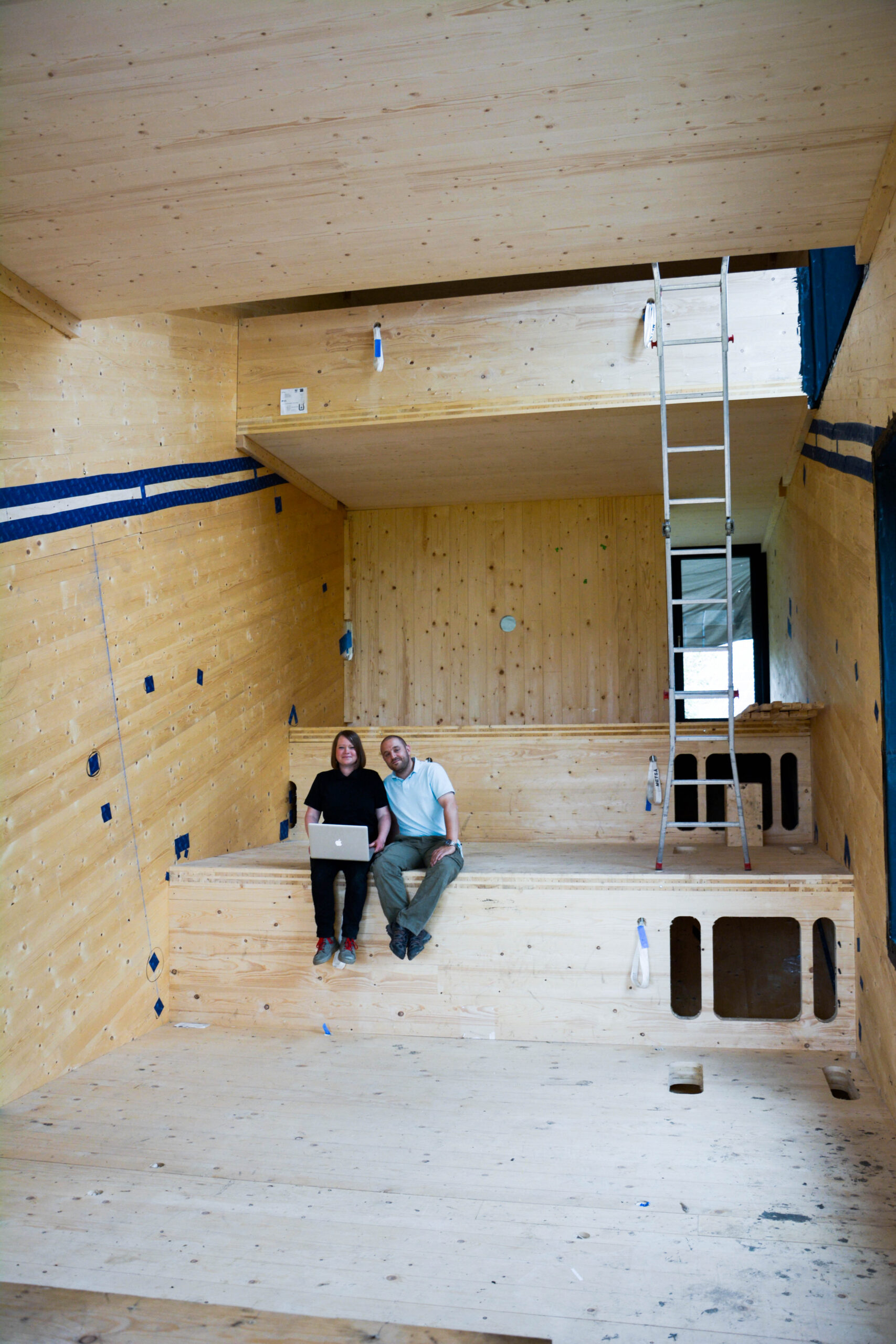 Henrike Gänß ist die Initiatorin, Architektin und Bauherrin des Projekts Mini-Max, das derzeit 20 Kilometer nördlich des Bodensees entsteht. Zusammen mit ihrem Partner, dem Wirtschaftsingenieur Marc Rother, will sie mit minimalen Ressourcen das Maximale an Raum, Behaglichkeit und Energieeffizienz schaffen. Das Einzigartige dabei: Es entsteht ein Gebäude ohne Möbel. „Für unseren künftigen Wohnraum nutzen wir das Potenzial der architektonischen Elemente: Boden, Decke und Wand“, sagt Henrike Gänß.