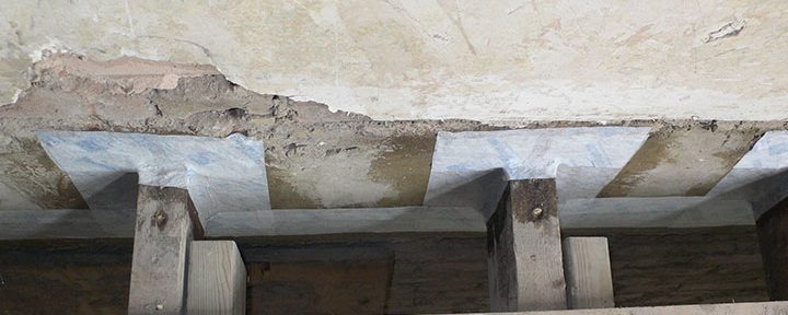 Typical leaks can be found at the joist bearings of timber roof joists in the masonry structure. The bricks between the joists are generally not plastered. On refurbishment projects, joints with the old masonry can lead to leaks; on new buildings, non-mortared butt joints between bricks can cause leaks. Even if a layer of plaster has been applied, airtight joints to the joists are generally neglected. This is indicated by air currents through the joints between old wooden floorboards detected during blower door tests.